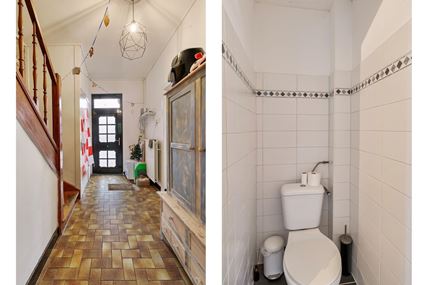 Upon entering the spacious hallway, you have access to the toilet and the shared dining area with open kitchen. The modern kitchen is fully equipped with an induction hob, extractor fan, refrigerator, microwave, and dishwasher. From the kitchen, you have direct access to the backyard, where you can relax and enjoy the sunshine. The cellar can be accessed via the hallway and offers additional storage space for residents. There are also two rooms located on the ground floor.